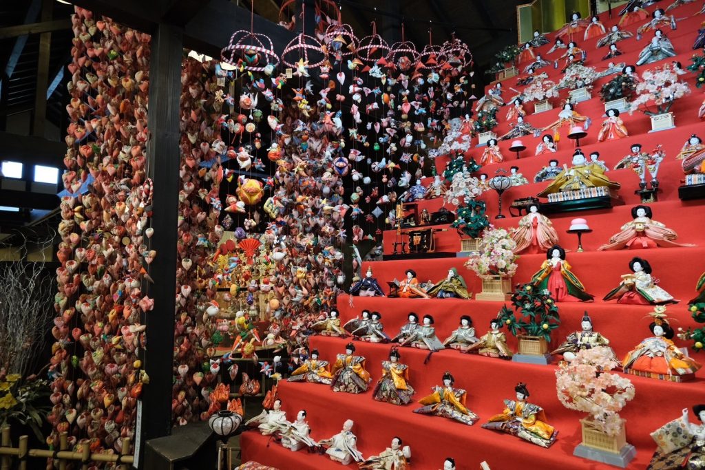 日本一の段数を誇る118段の壮大な雛段に、伝統的な雛人形がずらりと並ぶ光景は圧巻です。