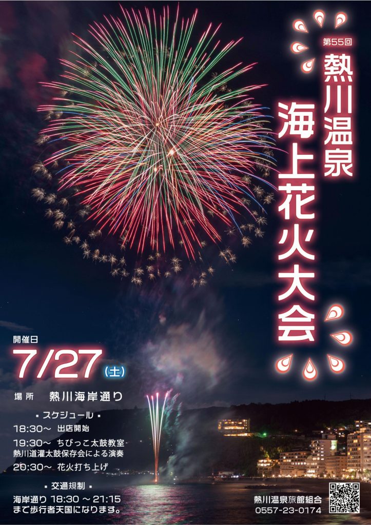 当館より車で15分程の熱川海岸にて開催される「熱川海上花火大会」は、