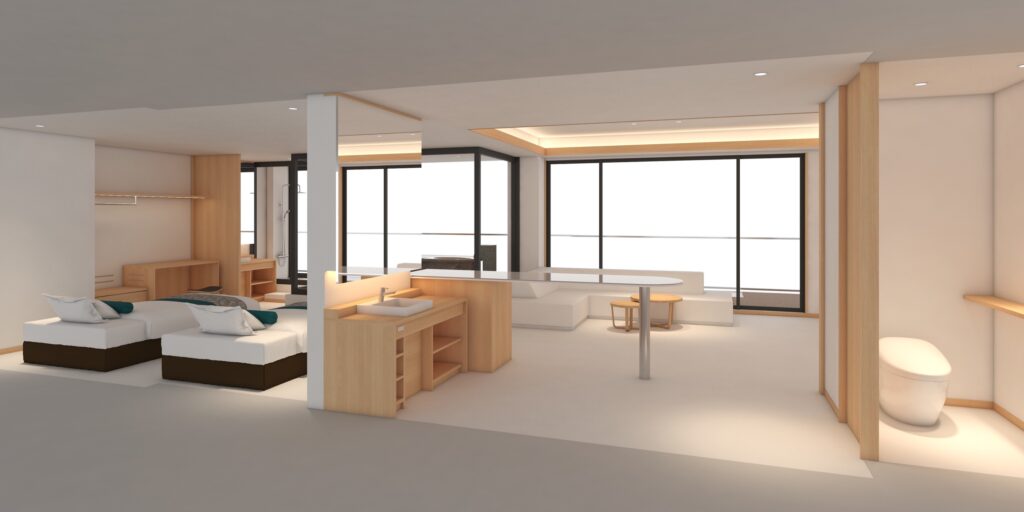 石花海のリニューアルに向け、客室完成イメージのパースが届きました!