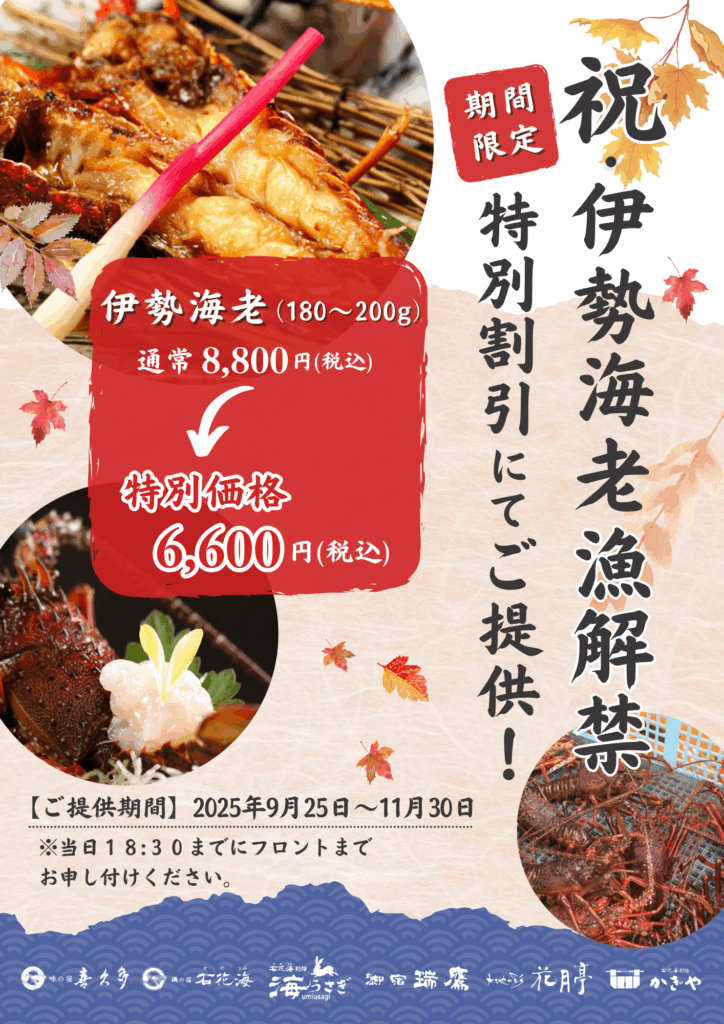 「伊豆稲取温泉 味の宿 喜久多」でも伊勢海老“特別割引”ご提供中!